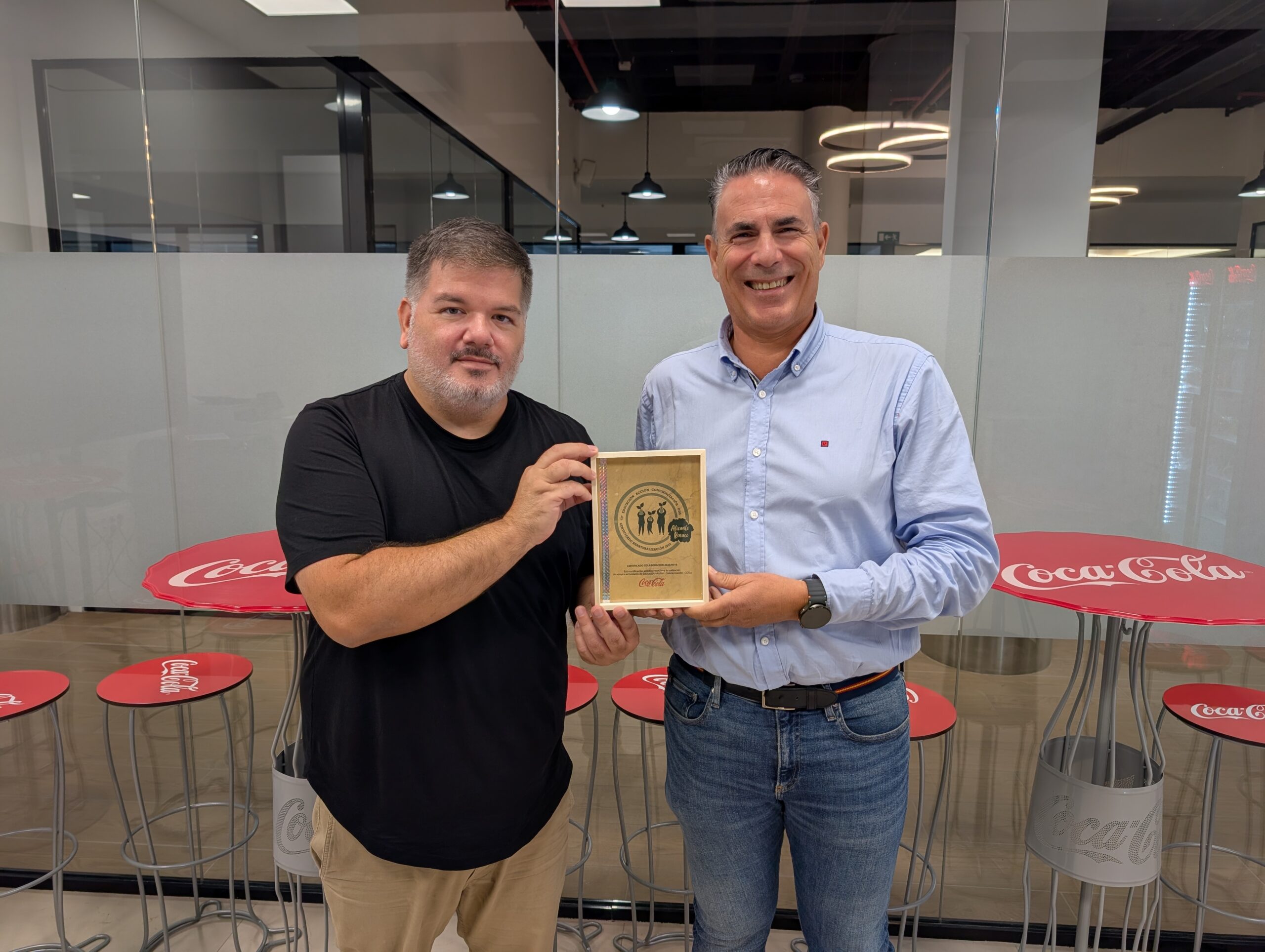 Daniel Aguilar, Director del Proyecto, ha entregado en las instalaciones de Coca-Cola Alicante el Certificado de Colaboración 2025, expresando que este tipo de alianzas juegan un papel crucial en la promoción de un futuro más sostenible y equitativo.