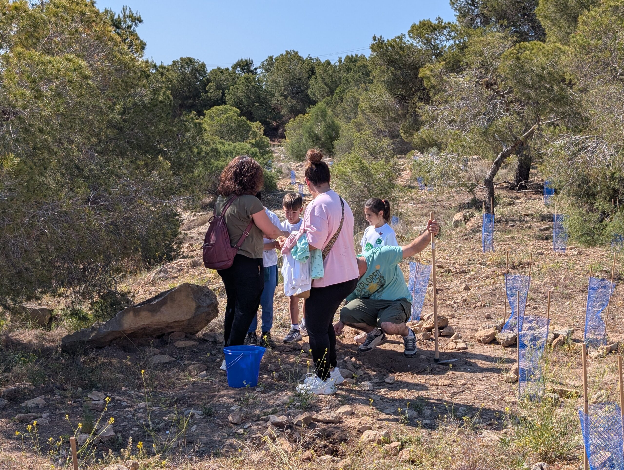 Durante esta acción colectiva se plantaron 250 ejemplares de Pinus halepensis (pino carrasco) y 50 Ephedra fragilis, además de sembrar manualmente más de 25.000 semillas de especies silvestres, seleccionadas por su adaptación al ecosistema mediterráneo y su capacidad de regenerar de forma natural la biodiversidad del monte.