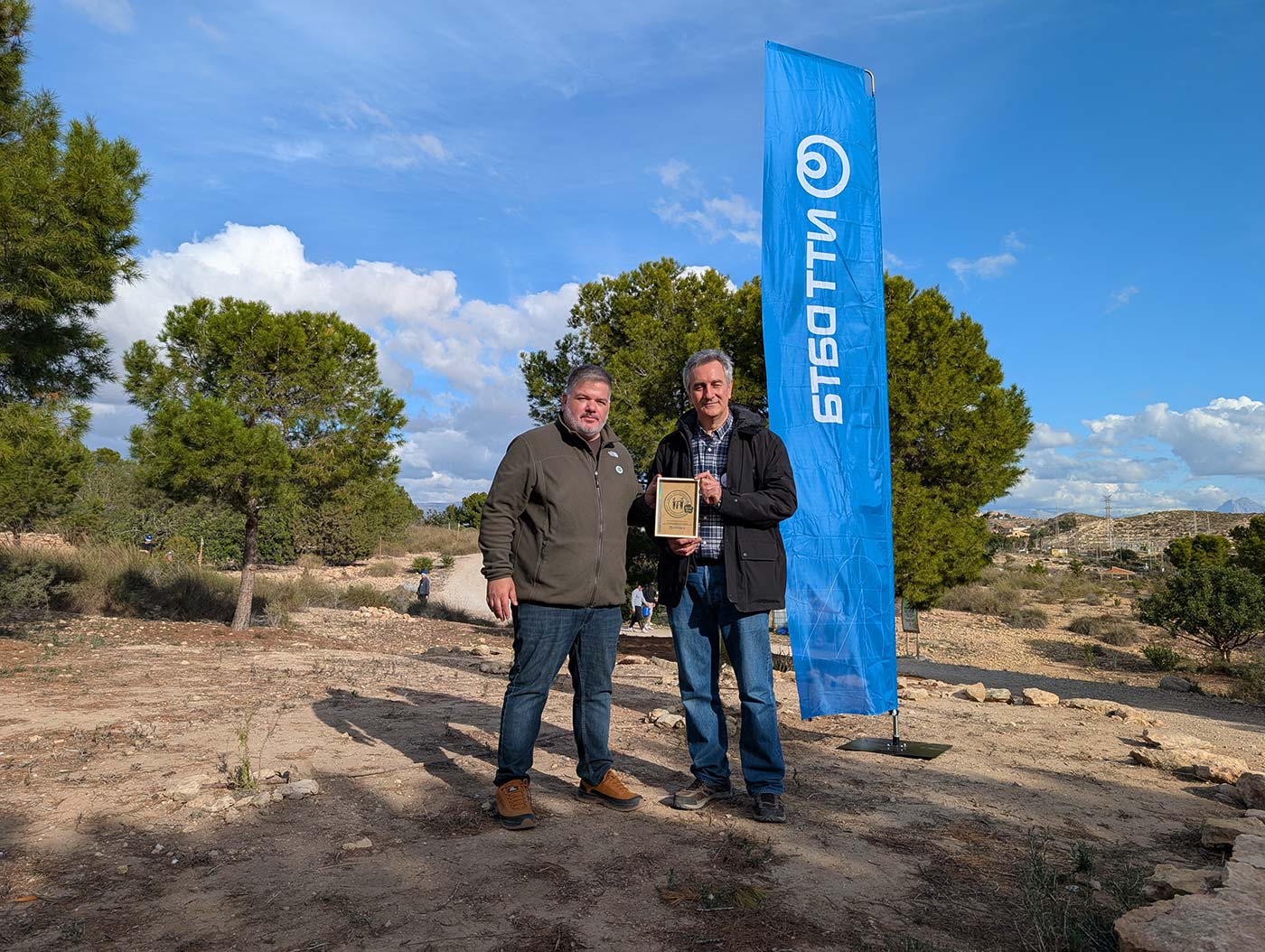 Durante el desarrollo de la jornada, Daniel Aguilar, director del proyecto Alicante Renace, hizo entrega a José Antonio Bermúdez del Certificado Anual de Renaturalización, como reconocimiento a la implicación de la compañía y de su plantilla en la restauración ecológica del Monte Orgegia. Aguilar subrayó que para una iniciativa como Alicante Renace el respaldo de una empresa del alcance y prestigio de NTT DATA supone un impulso estratégico fundamental, ya que no solo multiplica el impacto ambiental real de las actuaciones, sino que refuerza la dimensión social del proyecto, consolida su proyección institucional y demuestra que la colaboración entre grandes empresas y proyectos ambientales locales es una herramienta eficaz para avanzar hacia un modelo de territorio más sostenible, resiliente y comprometido con su entorno. En este sentido, destacó que: